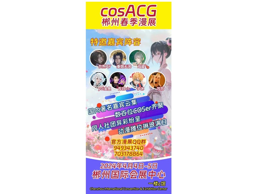 最美四月天 春風得意正少年丨4月4日-5日cosACG郴州春季漫展將在郴州國際會展中心舉行